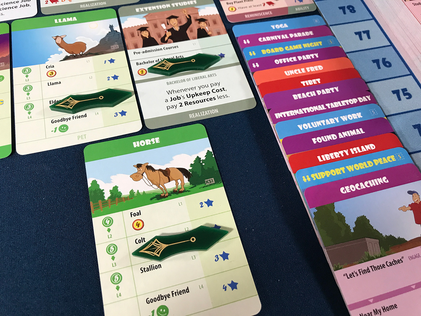 There are many different actions to take and cards to work on in order to tell a full life story. Expansions provide entirely new ways to spend time, while modules add variety and exciting new elements. There is always a challenge to do well, yet the narrative is the highlight!