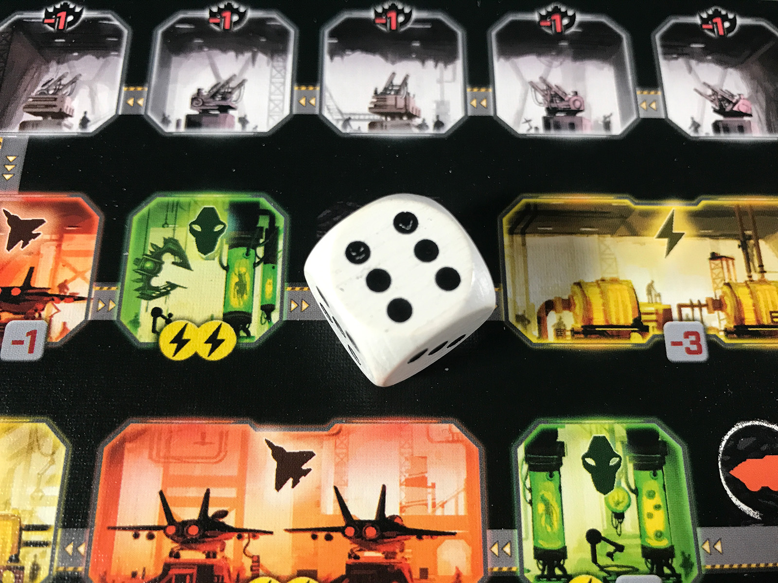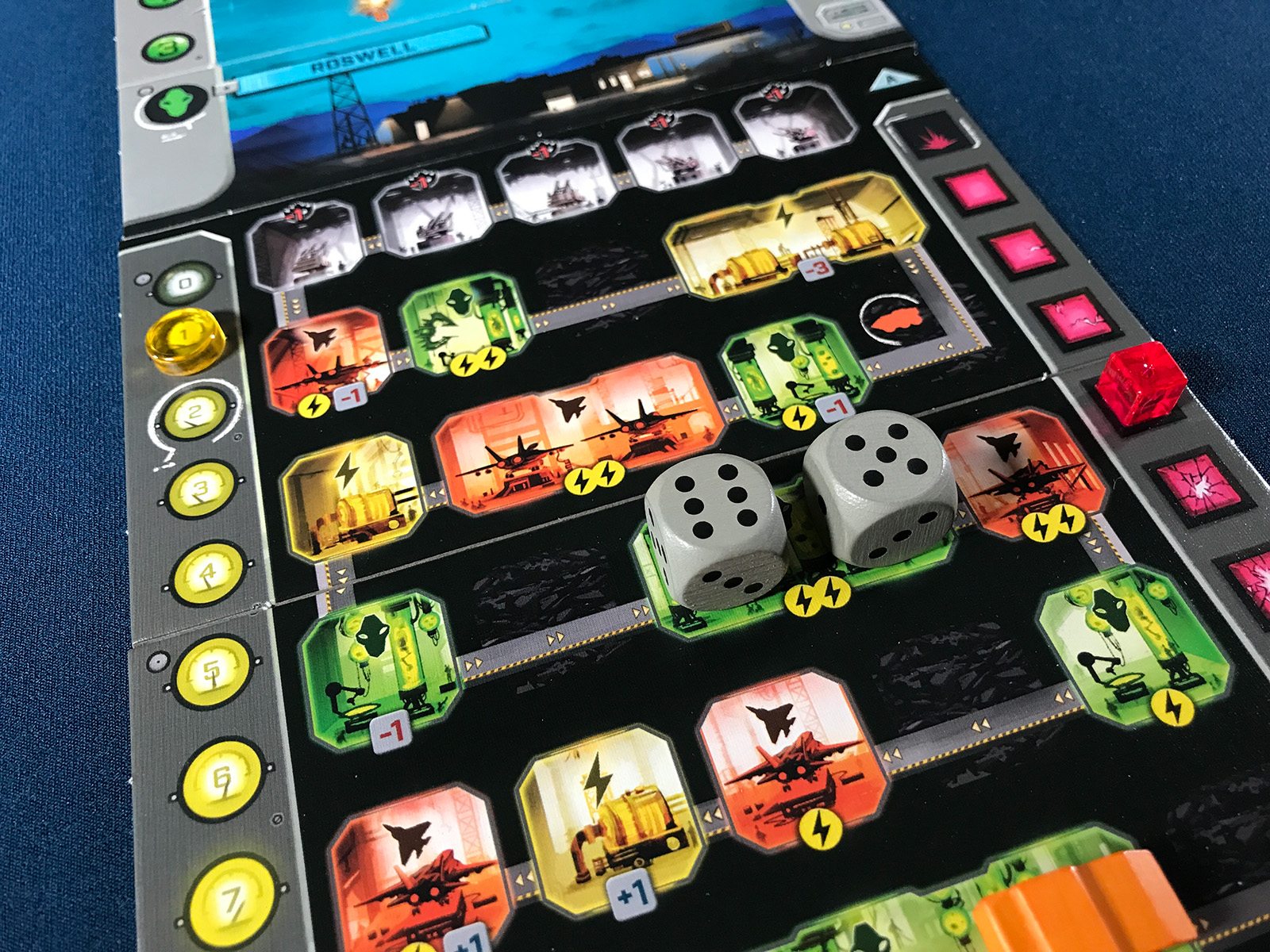 Such a clever set of mechanics! Higher value dice are often very useful, yet they will accelerate the alien invasion.