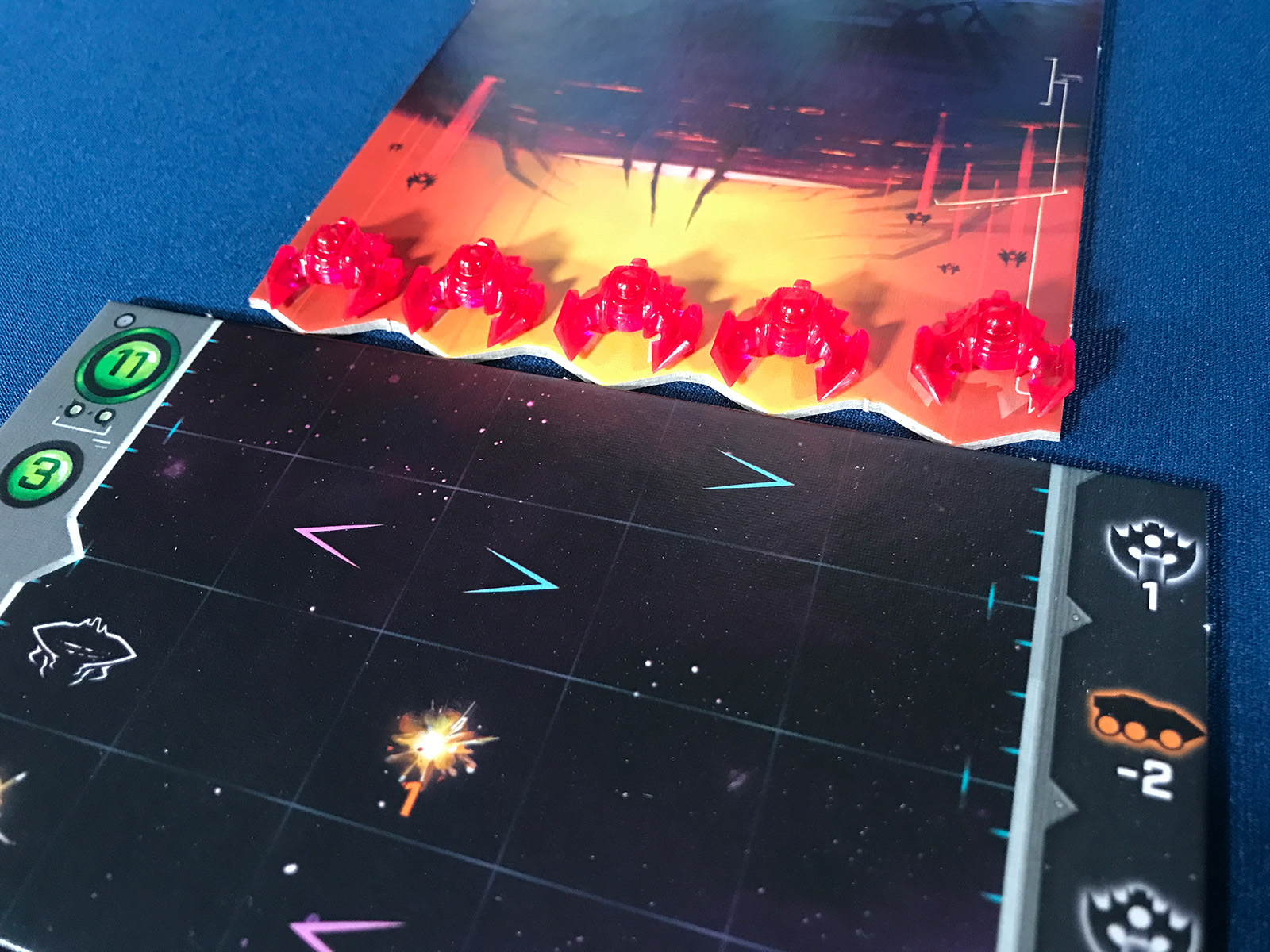 I had these ships perfectly aligned, but apparently, one of them shifted a little early. Alien dice, and now truly alien plastic ships… I’m looking at a dangerous game. Ha ha!