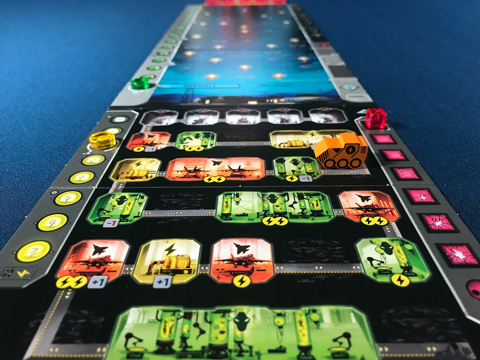 This is a unique play area that feels almost vertical, rather than spreading out. It’s quite thematic, though, and only requires a little stretching during the first few rounds.