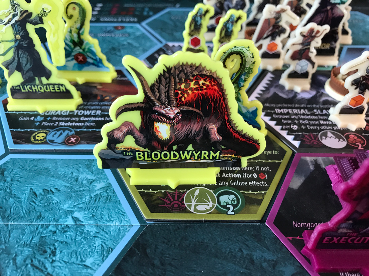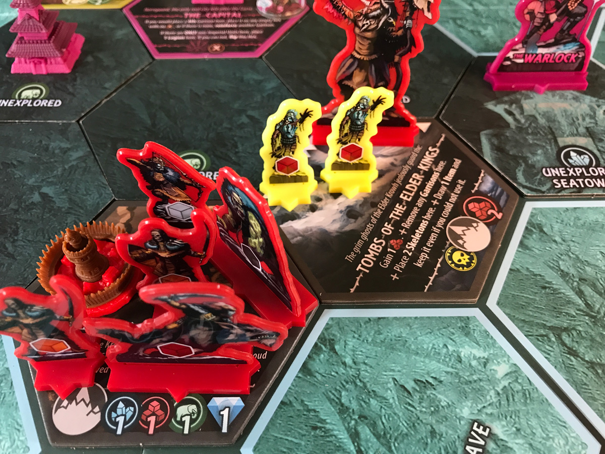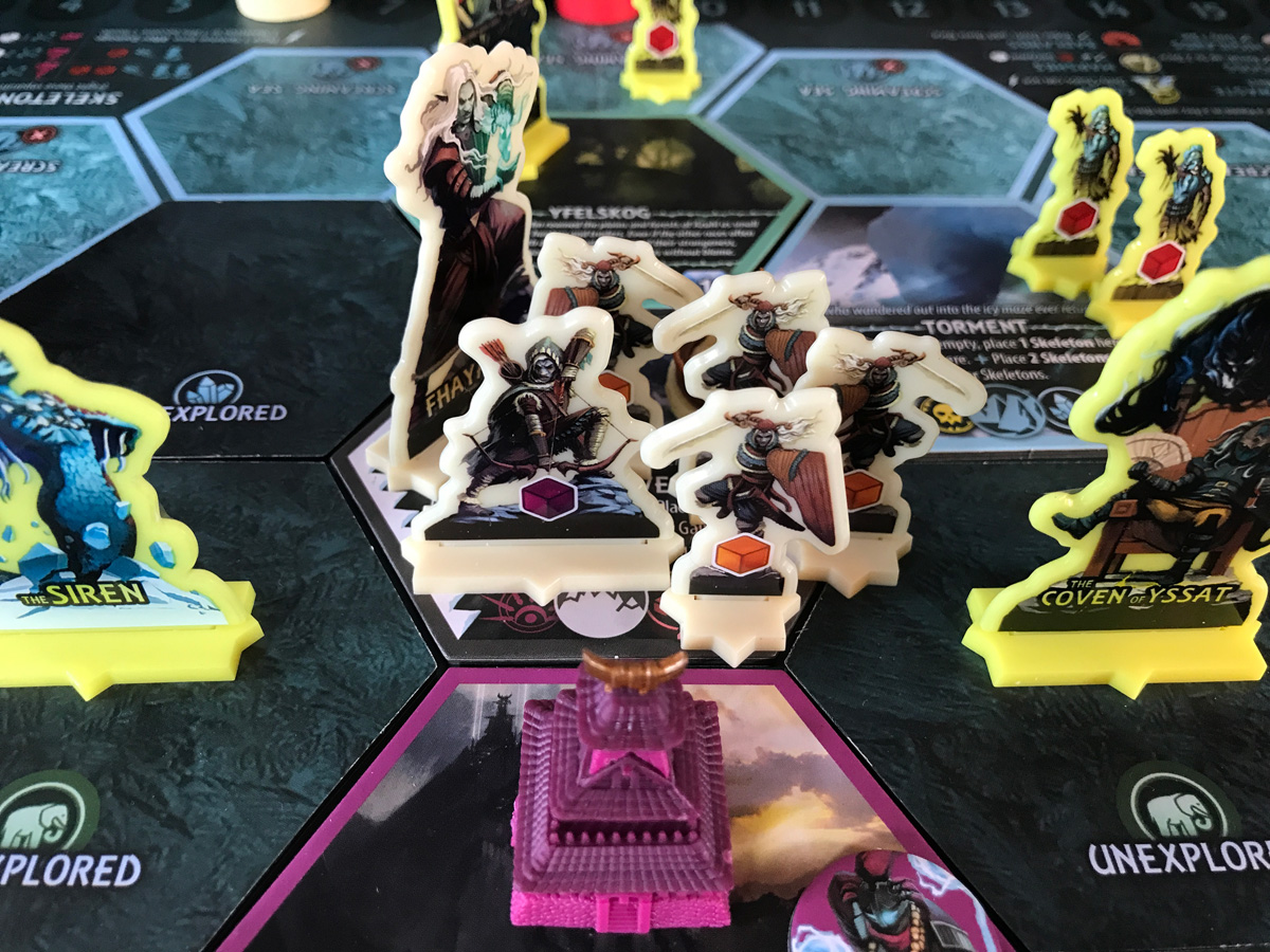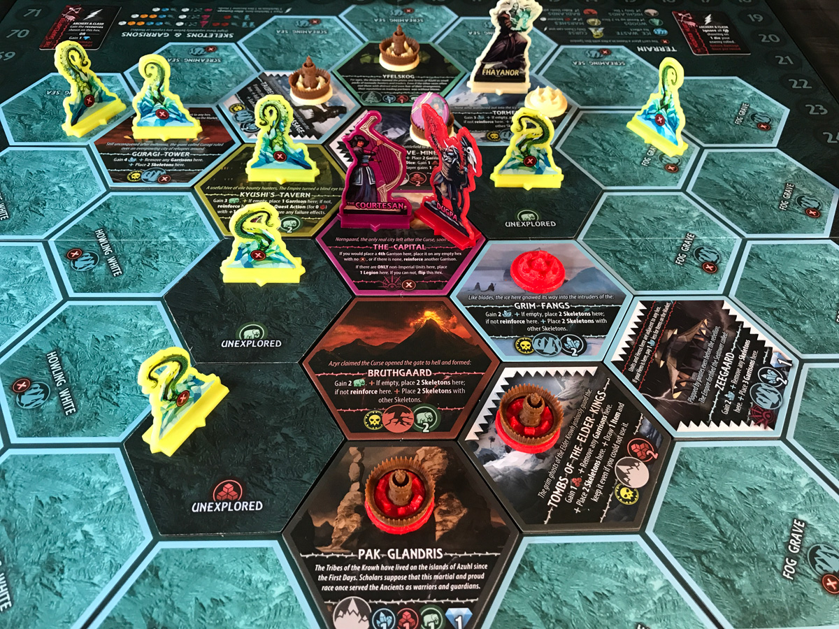 I should note here that the only known rules mistake I made was with the Lichqueen in the background. She was on a sea tower, which made her adjacent to every hex.