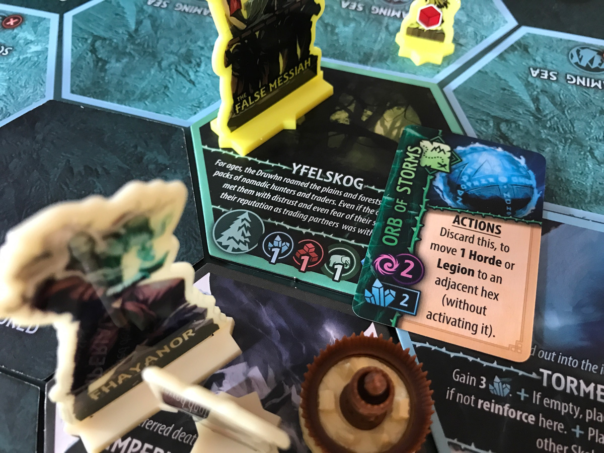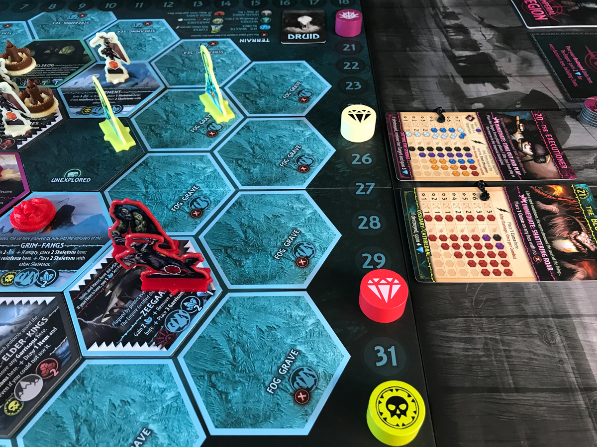 However, my biggest issue was how far ahead Chaos was on the victory point track. And Fhayanor was behind.