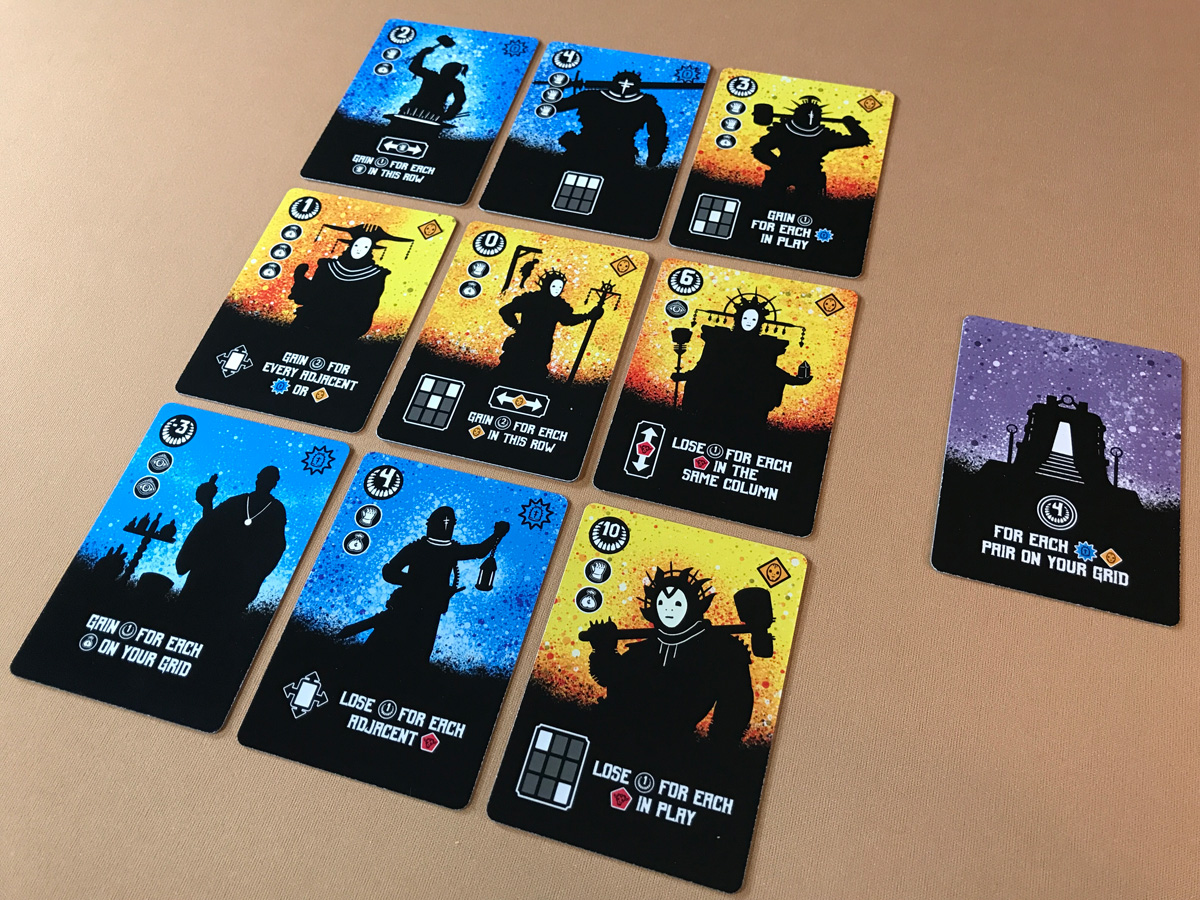 - Placing cards in a grid creates restrictions for some cards, thereby adding to the challenge of optimization.