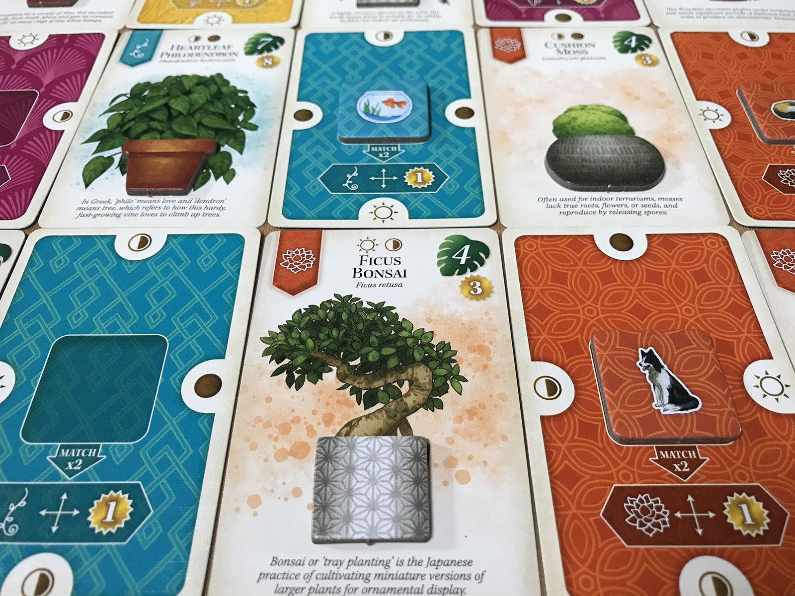 During setup, a random plant and room begin the grid that will ultimately turn into a total of 15 cards. So pretty!
