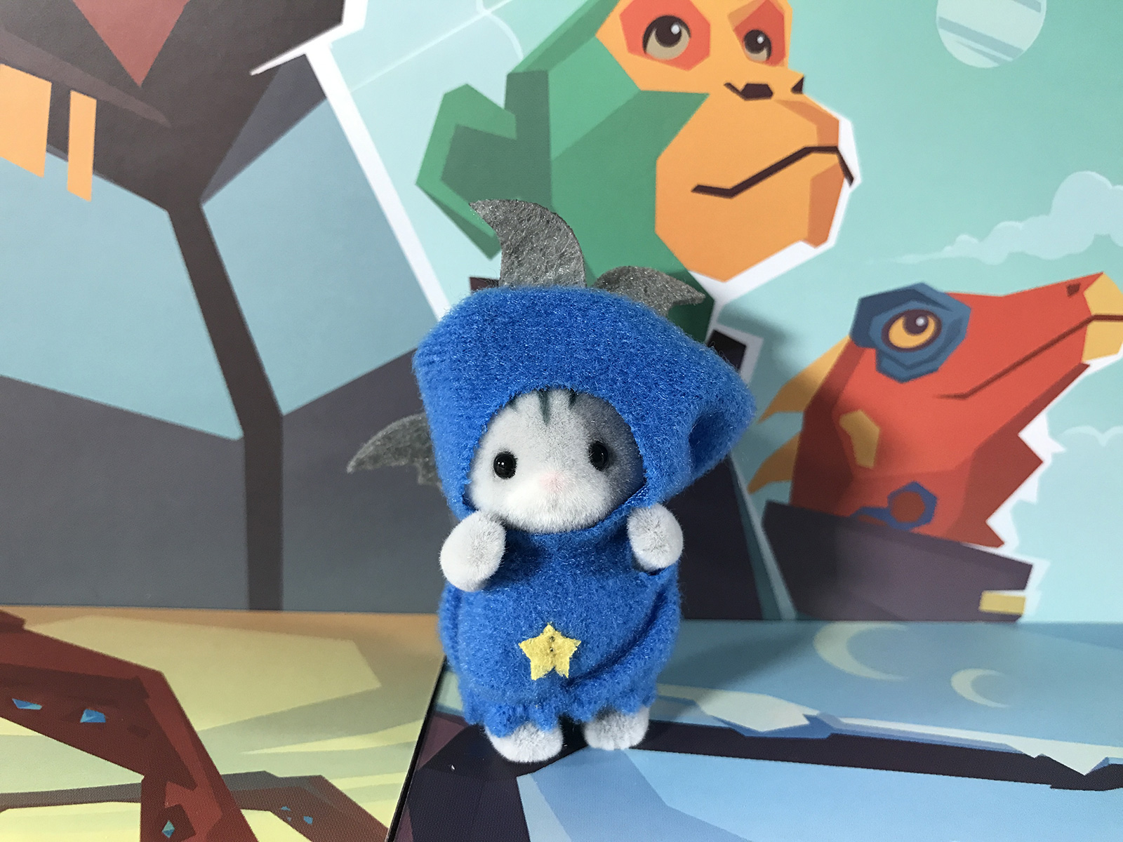 Can you believe that I have absolutely no space-themed Calico Critters? They like to keep their feet planted on the ground. But this curious cat was decked out as a gargoyle!